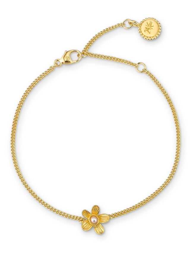 De bloemenfamilie! Deze klassieke armband bevat een bloem afgewerkt met een parel in het midden. De armband heeft een bijpassende ring, ketting, oorbellen en nog een armband. Zo kun je eindeloos combineren! Alle sieraden van 24Kae worden door Kae Sutherland met liefde en oog voor detail ontworpen. Elke armband van 24Kae kenmerkt zich door zijn authenticiteit door een unieke handgemaakte bedel met gravure.