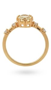 Deze prachtige 24Kae ring heeft een licht groene ovale steen en twee kleine witte steentjes aan beide kanten. Een echte eyecatcher die onmisbaar is. Ieder 24Kae sieraad wordt gekenmerkt door haar echtheid door middel van een unieke handgemaakte bedel of gravering met een touch of beige.