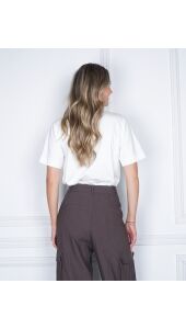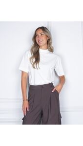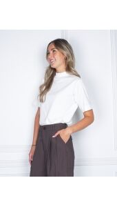Dit prachtige t-shirt van Azulae heeft een hooggesloten hals, korte mouwen & is gemaakt van een luchtige en stretchy stof. Op de hals zit een subtiele embroidery van het logo! Combineer met een pantalon of je favoriete jeans.