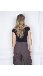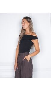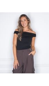 Stijlvolle off-shoulder top van Azulae. Gemaakt van een soepele blend van modal en polyester, voelt de stof heerlijk zacht aan op de huid en valt deze elegant om het lichaam. De top combineert moeiteloos comfort met een vrouwelijke, zomerse uitstraling perfect voor een casual dag of een avondje uit. Draag 'm met een high-waist jeans of een pantalon voor een moeiteloos chique look.