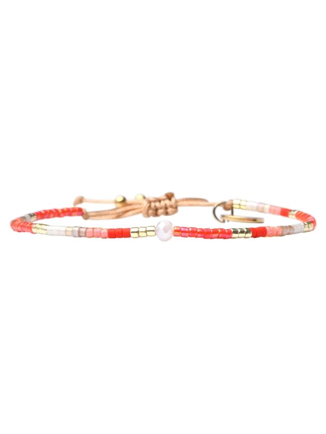 Armband Emma is een subtiele verstelbare armband die je makkelijk met andere armbandjes kunt mixen. De armband heeft een mix van verschillende kleurtjes en heeft een grotere kraal in het midden. Verkrijgbaar in verschillende kleurencombinaties!