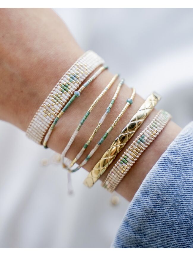 Armband Emma is een subtiele verstelbare armband die je makkelijk met andere armbandjes kunt mixen. De armband heeft een mix van verschillende kleurtjes en heeft een grotere kraal in het midden. Verkrijgbaar in verschillende kleurencombinaties!