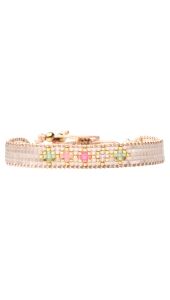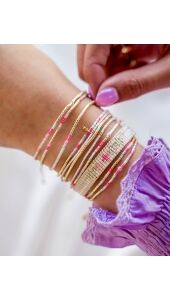 Deze prachtige verstelbare armband is gemaakt van de mooiste roze, mint en beige kraaltjes. Draag alleen of samen met de andere armbanden in de kleur Mango Sorbet voor een te leuke armparty!