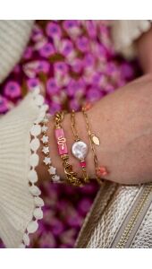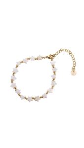 Look for the stars! Wij zijn fan van deze gouden armband met witte parelmoeren sterren van Go Dutch label. Creëer jouw summer armparty door deze armband te combineren met een bangle en kralen armband.