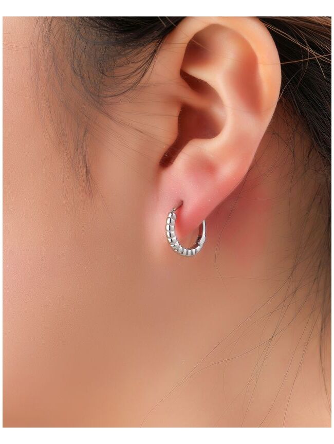 Trendy zilverkleurige oorringen met een subtiele geribbelde structuur voor een speelse, moderne look. Perfect om solo te dragen of te combineren met meerdere oorbellen.