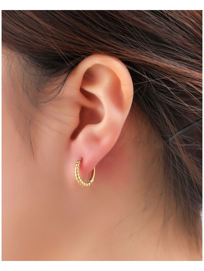 Trendy goudkleurige oorringen met een subtiele geribbelde structuur voor een speelse, moderne look. Perfect om solo te dragen of te combineren met meerdere oorbellen.