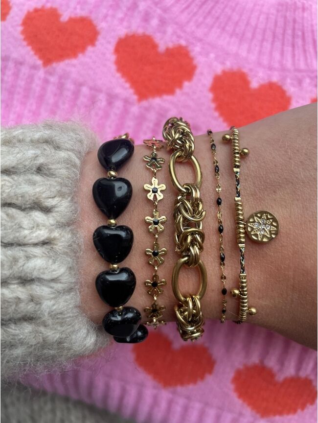 DAY&EVE by GO DUTCH LABEL Bloemetjes armbandje zwart