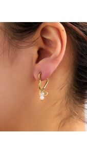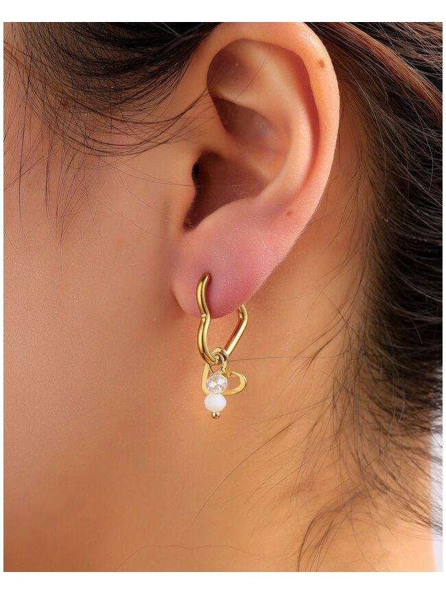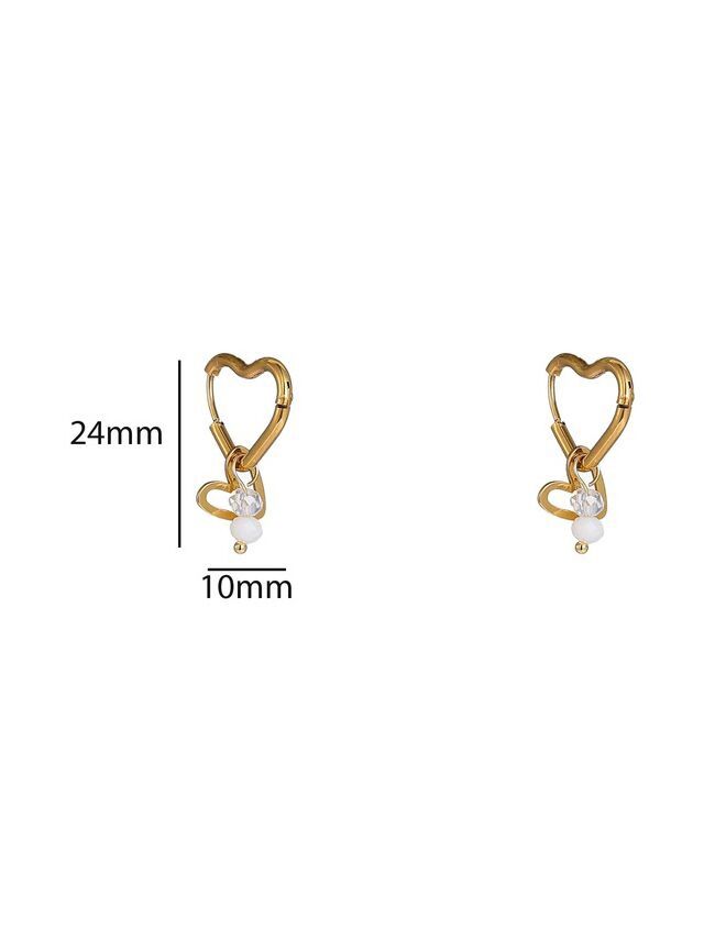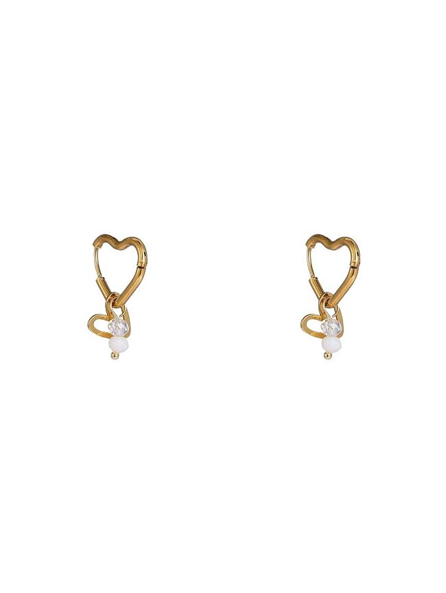 super cute goudkleurige oorbellen in hartvorm met een klein hangertje van kraaltjes en een subtiel transparant steentje. perfect voor een romantische touch en leuk om te combineren in een earparty.