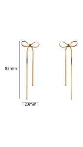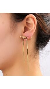 Deze elegante oorbellen met strikdetail en lange drop geven je look een vrouwelijke en verfijnde touch. Het slanke design beweegt subtiel mee en zorgt voor een chic statement zonder te overheersen. Perfect om zowel casual outfits als avondlooks nét dat beetje extra te geven.