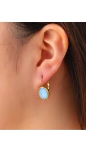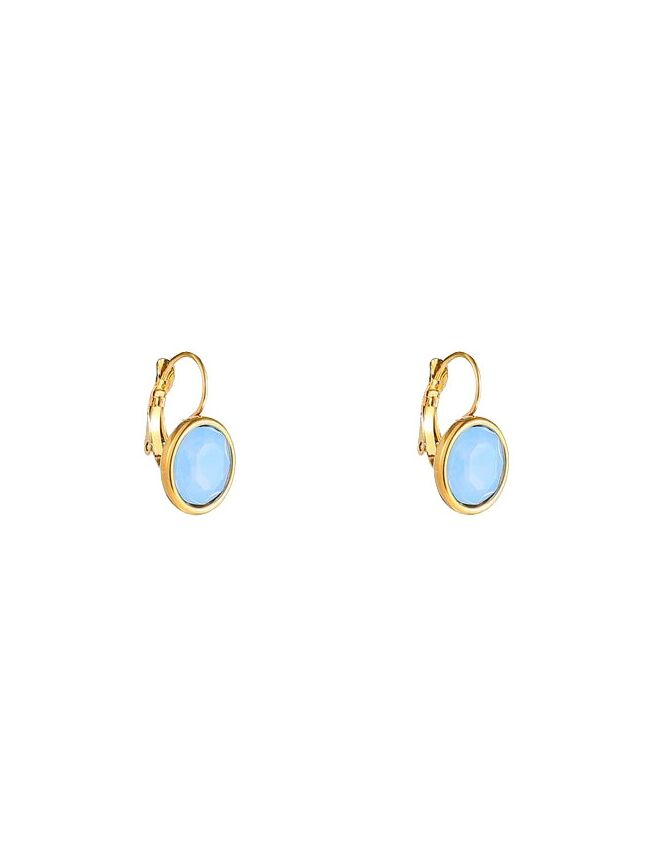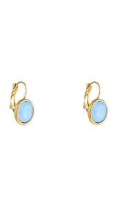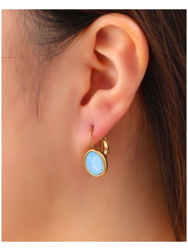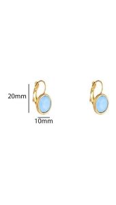 Deze verfijnde oorbellen met lichtblauwe steen geven je look een zachte, frisse uitstraling. De gouden setting zorgt voor een warme balans en laat de blauwe tint extra stralen. Perfect om subtiel kleur toe te voegen aan je everyday outfit of een zomerse touch te geven aan je avondlook.