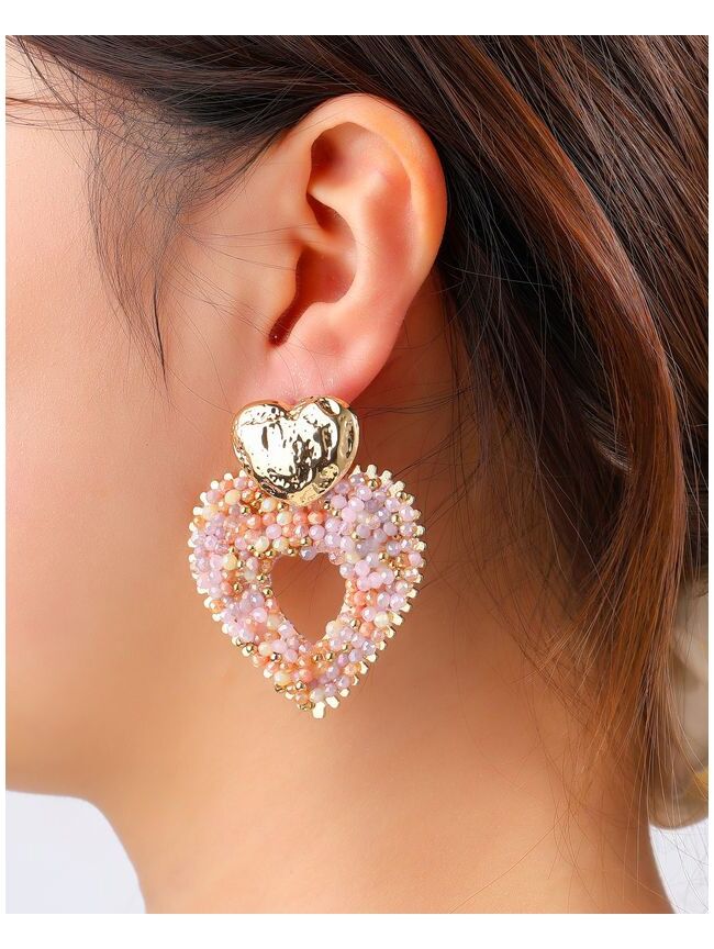 OORSTEKER HART ROZE PARELS