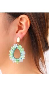 DRUPPEL OORBELLEN MET BLOEMEN GROEN