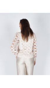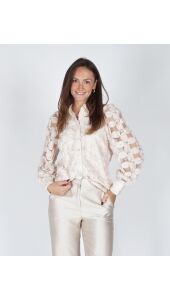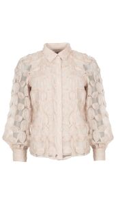 Deze blouse is een echte blikvanger dankzij de verfijnde 3D-bloemenstructuur. Gemaakt van een luchtige mesh kwaliteit die soepel valt en zorgt voor een elegante uitstraling. De ballonmouwen geven het ontwerp een vrouwelijke en romantische touch, terwijl de klassieke kraag en knoopsluiting zorgen voor een tijdloze afwerking. Perfect voor zowel een chique diner als een feestelijke gelegenheid.