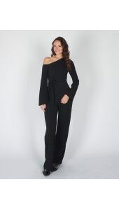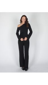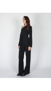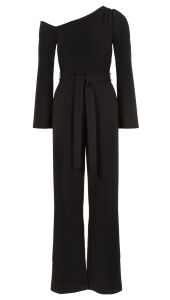 Deze stijlvolle jumpsuit is gemaakt van een soepele crêpe jersey met stretch voor ultiem draagcomfort en een perfecte pasvorm. De asymmetrische schouderlijn zorgt voor een moderne, verfijnde look, terwijl de strikceintuur in de taille je silhouet vrouwelijk accentueert. Draag hem naar een chic diner of feestelijke gelegenheid, met deze jumpsuit straal je moeiteloos elegantie en klasse uit.