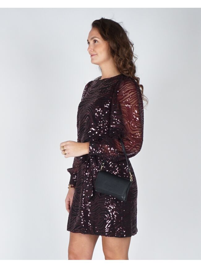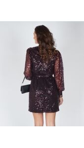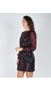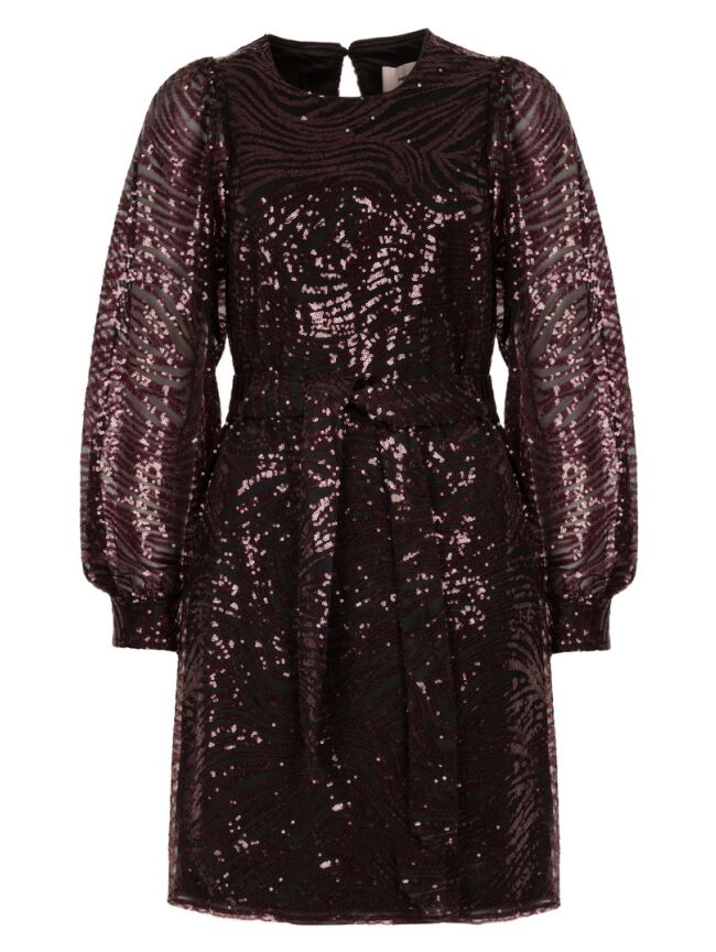 Deze elegante feestjurk heeft all-over pailletten voor een sprankelend effect. Het rechte model met strikbare tailleband flatteert je figuur, terwijl de lange mouwen en subtiele glans zorgen voor een chique avondlook. Perfect voor feestjes, gala’s en speciale gelegenheden.