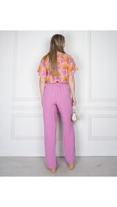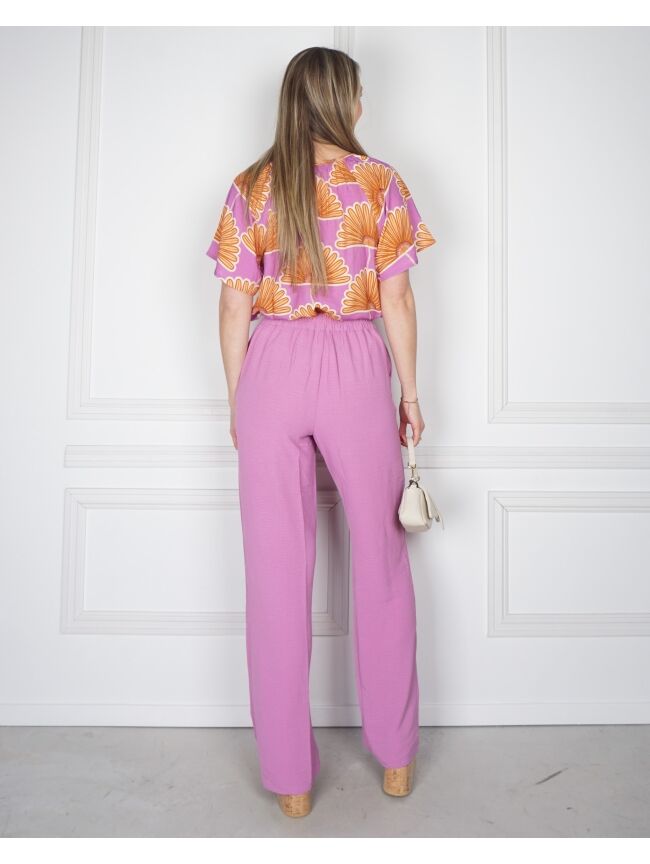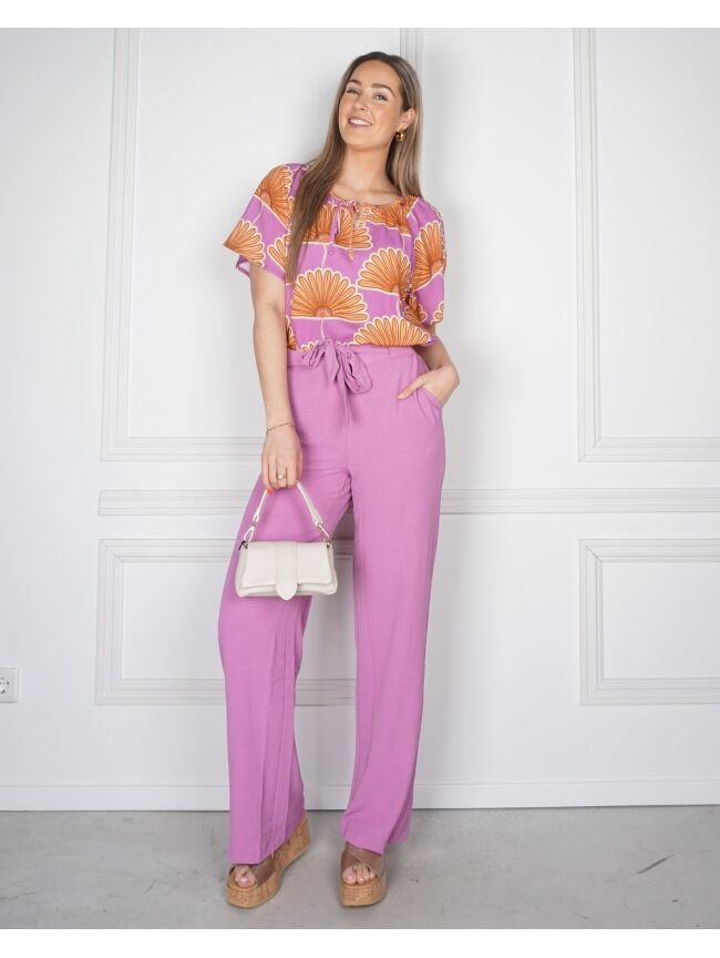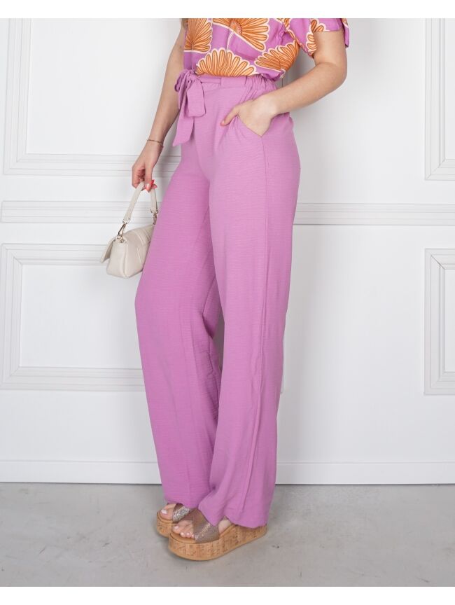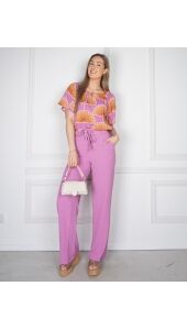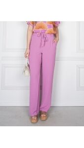 Deze roze broek met strikceintuur is de perfecte balans tussen stijl en comfort. Het zachte, ademende materiaal en de flatterende pasvorm maken het een ideaal kledingstuk voor zowel casual als chique looks. De strikceintuur voegt een speelse en vrouwelijke touch toe, terwijl de frisse roze kleur je outfit direct opfleurt.