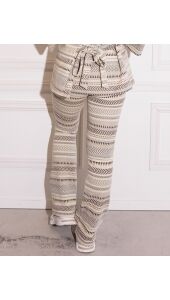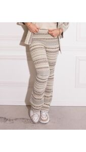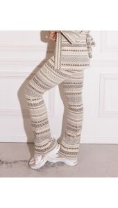 Deze nieuwe flared broek van Geisha is een echte eyecatcher in jouw wardrobe. Deze broek heeft steekzakken aan de voorkant en is voorzien van een elastische boord. De broek heeft een allover grafisch patroon. Draag deze broek super leuk als co-ord set met de matchende kimono. Maak hem af met wat stoere accessoires en je bent helemaal ready to go!
