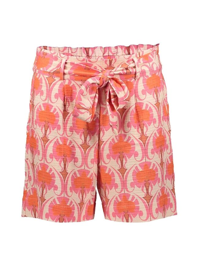De short is een korte comfortabele linnen broek met riemlusjes en strikceintuur in de taille. Dit broekje heeft een normale pasvorm. Combineer hem met de bijpassende top voor een complete look.