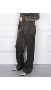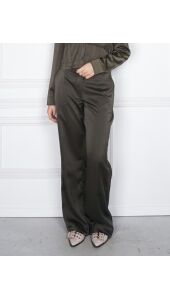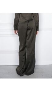 Deze stijlvolle pantalon met hoge taille en uitlopende pijpen heeft een elegante satin look. Voorzien van steekzakken en een knoop- met ritssluiting. Perfect te combineren als co-ord set.