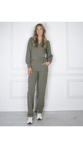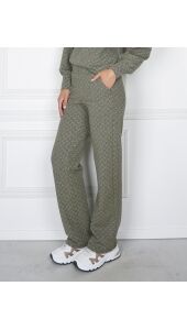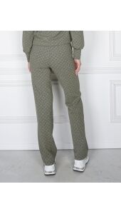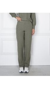 Comfortabele dames broek met een subtiel grafisch dessin en een aangesloten pasvorm. De elastische tailleband en licht uitlopende pijpen zorgen voor een flatterend silhouet en veel draaggemak. Gemaakt van een soepele stretchstof – ideaal voor een stijlvolle, relaxte look.