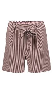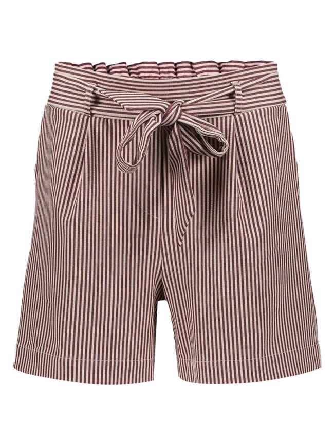 Deze short is een stijlvolle must-have met een speelse twist. De high-waisted fit en subtiele paperbag-taille zorgen voor een flatterend silhouet, terwijl de strikceintuur zorgt voor een nonchalant accent. De fijne bordeaux strepen geven een moderne, zomerse uitstraling. Combineer als co-ord set of draag los, alles is mogelijk.