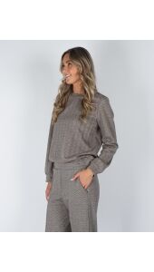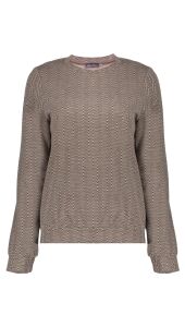 Deze top combineert stijl en comfort met een vrouwelijke, aangesloten pasvorm. De ronde hals en lange mouwen zorgen voor een tijdloze uitstraling, terwijl het opvallende zigzagpatroon met lurex een subtiele sparkle toevoegt. Perfect te dragen als onderdeel van de bijpassende co-ord set voor een complete look.