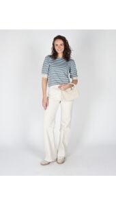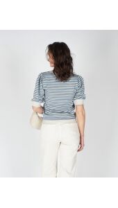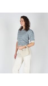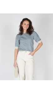 Deze groen-blauwe kortemouwen top met lurex geeft je outfit een subtiele sparkle. De lichte glans en comfortabele fit maken ’m perfect voor zowel overdag als ’s avonds. Combineer met een jeans of rok voor een frisse, trendy look.