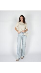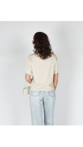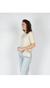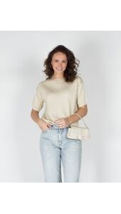 KORTE MOUWEN TOP MET LUREX BEIGE
