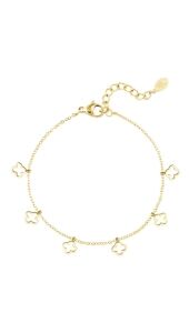 Shop nu dit te schattige gouden armbandje met zes leuke open klavertjes! Het armbandje is superleuk te combineren met meerdere schattige armbandjes maar kan ook perfect enkel gedragen worden. Tip: draag deze armband in combinatie met meerdere sieraden met klaver details voor een complete look.