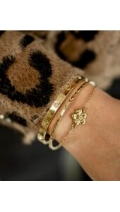 Deze subtiele, goudkleurige bangle is een prachtig voorbeeld van eenvoud met stijl. Het fijne, gevlochten design geeft een verfijnde en moderne uitstraling, perfect voor dagelijks gebruik of als aanvulling op een gelaagde armbandenlook. De armband is gemaakt van stainless steel, waardoor hij 100% waterproof is en niet verkleurt.