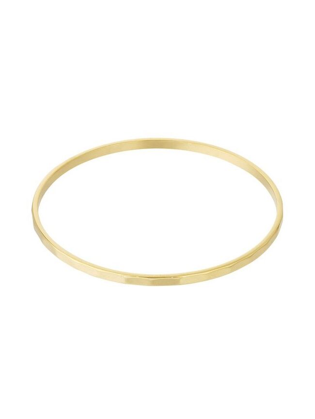 Deze goudkleurige bangle heeft een strak, hoekig design dat perfect past bij een minimalistische en moderne stijl. De smalle vorm en de eenvoudige afwerking maken dit sieraad een subtiele eyecatcher voor elke gelegenheid.