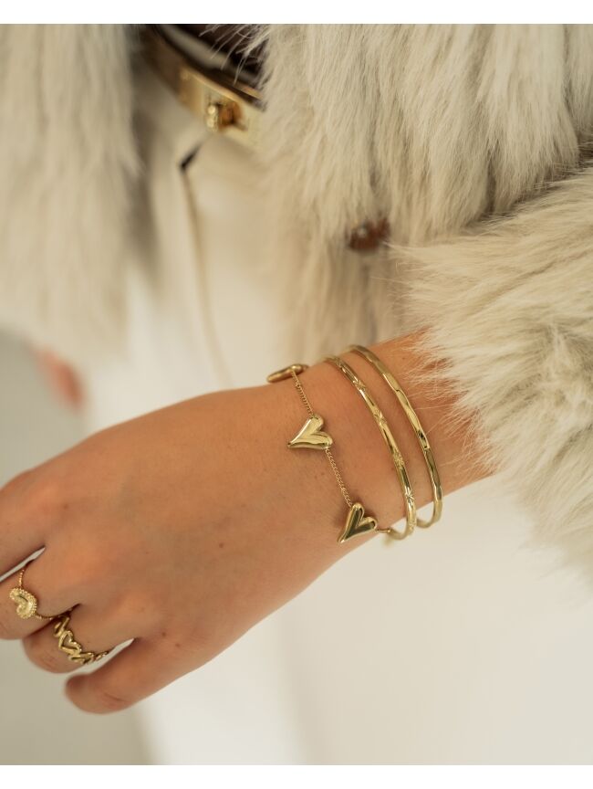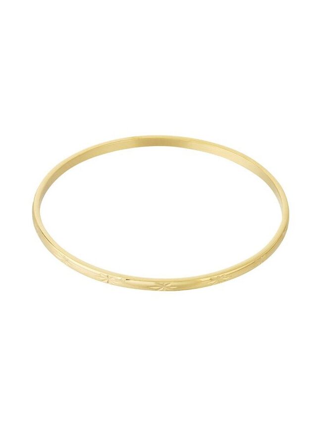 Eenvoudige goudkleurige armband met een minimalistisch design. De armband is smal, heeft geen sluiting en schuif je gemakkelijk om je pols en gemaakt van stainless steel.