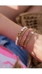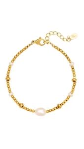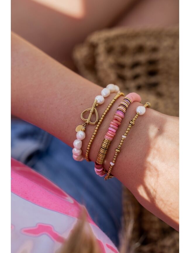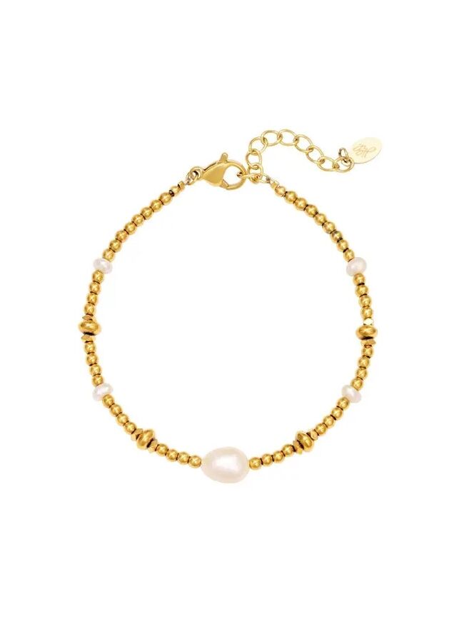 Dit mooie gouden armbandje met zoetwaterparels is perfect voor een zomerse armparty! Eindeloos te combineren & heel leuk om te matchen met een van onze andere parel sieraden. Pretty!