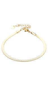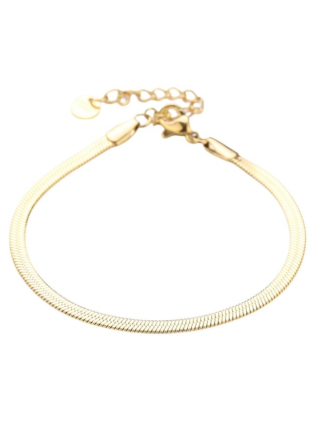 Minimalistisch, classy en tijdloos. Deze gouden snake armband is een echte essential in jouw sieradencollectie. De fijne, soepel vallende schakel zorgt voor een elegante uitstraling met een subtiele glans. Perfect om solo te dragen voor een clean look of te combineren met meerdere armbanden voor een trendy layering effect.