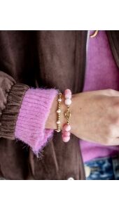 Deze prachtige armband combineert klassieke parels met glanzende goudkleurige kralen voor een stijlvolle en vrouwelijke uitstraling. De afwisseling tussen parel en goud geeft het sieraad een luxe, tijdloze look die moeiteloos past bij zowel een dagelijkse outfit als een chique gelegenheid. Dankzij het elastische ontwerp is de armband comfortabel om te dragen en eenvoudig aan en uit te doen. Perfect om solo te dragen of te combineren met andere armbanden voor een elegante stacked look.