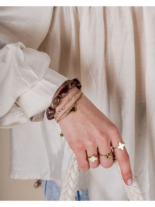 Deze armband bestaat uit stijlvolle schakels gecombineerd met hartvormige details, waardoor hij meteen opvalt. Het design is speels én modern, perfect om elke outfit extra karakter te geven. Draag hem solo als statement of mix hem met andere armbanden voor een trendy look.