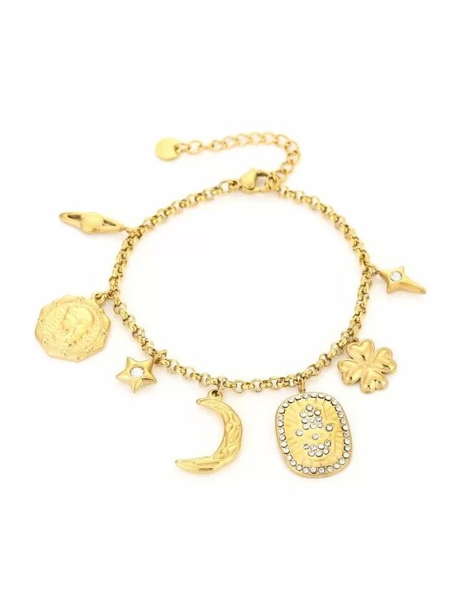 Deze armband met bedels is een echte must-have voor jouw sieradencollectie! De schattige bedels geven een speelse en unieke touch aan je look, waardoor je altijd iets persoonlijks kunt toevoegen. Perfect voor elke gelegenheid, mix and match met jouw sieraden voor een geweldige armparty!