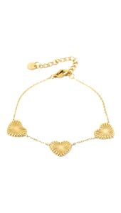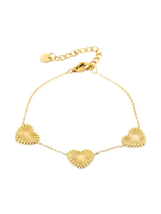 Deze armband is voorzien van drie opvallende hartjes die direct de aandacht trekken. Het ontwerp heeft een speelse én stoere uitstraling, waardoor het een perfect statement item is voor iedere sieradenliefhebber. Draag hem solo voor een krachtige look of combineer hem met andere armbanden voor een unieke stijl.
