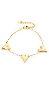 ARMBAND DRIE DICHTE HARTJES GOUD