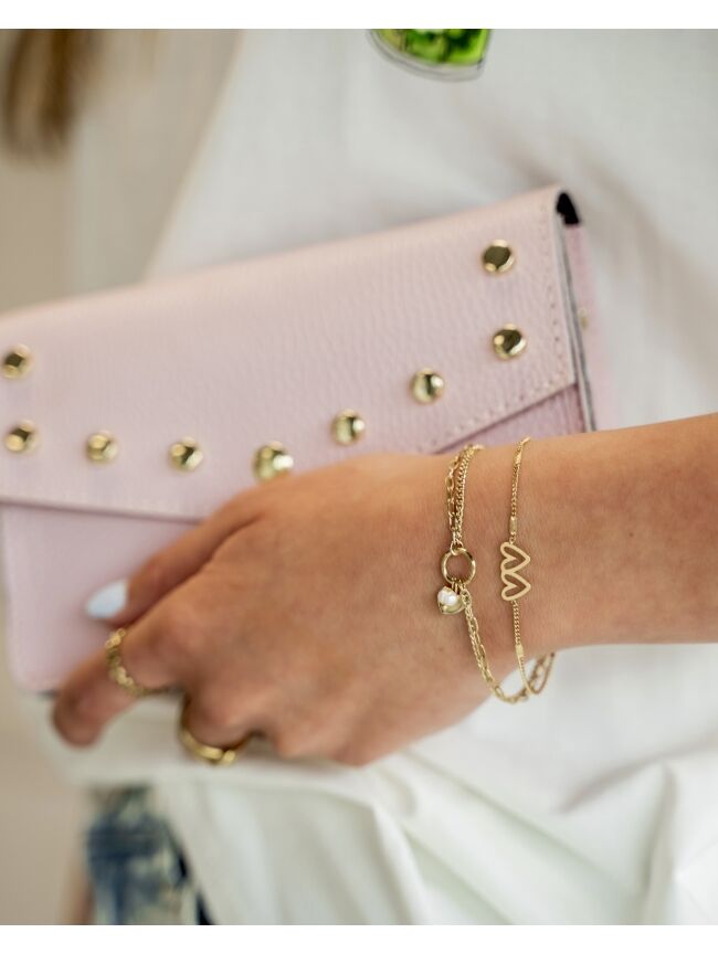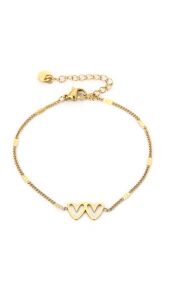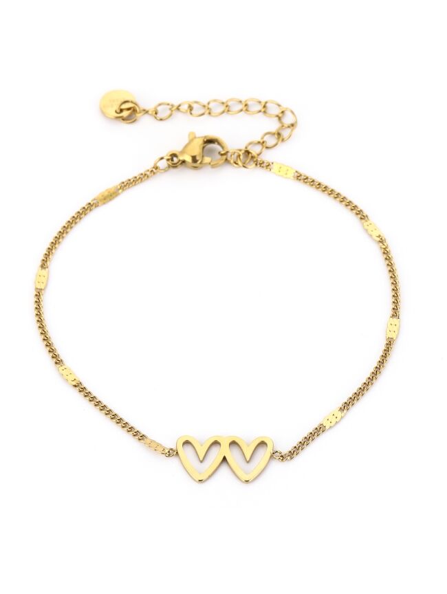ARMBAND TWEE HARTJES EN STAAFJE GOUD