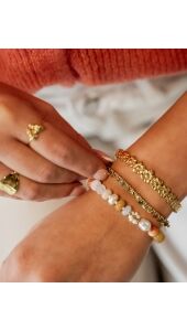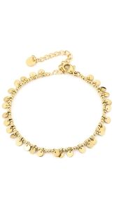 Deze goudkleurige armband met fijne muntjes vangt het licht bij elke beweging. Het subtiele gerinkel en de verfijnde details maken dit sieraad tot een dagelijkse favoriet met karakter. Draag ‘m solo voor een understated glow of mix ‘m met andere armbanden voor een laid-back luxe vibe.