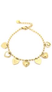 Fall in love met deze charmante armband vol hartjes! Deze eyecatcher is speels, vrouwelijk en een tikkeltje romantisch, perfect om jouw stijl nét dat beetje extra liefde te geven. De armband is afgewerkt met meerdere hartjes-bedels in verschillende vormen en formaten, die bij elke beweging subtiel meebewegen en schitteren.