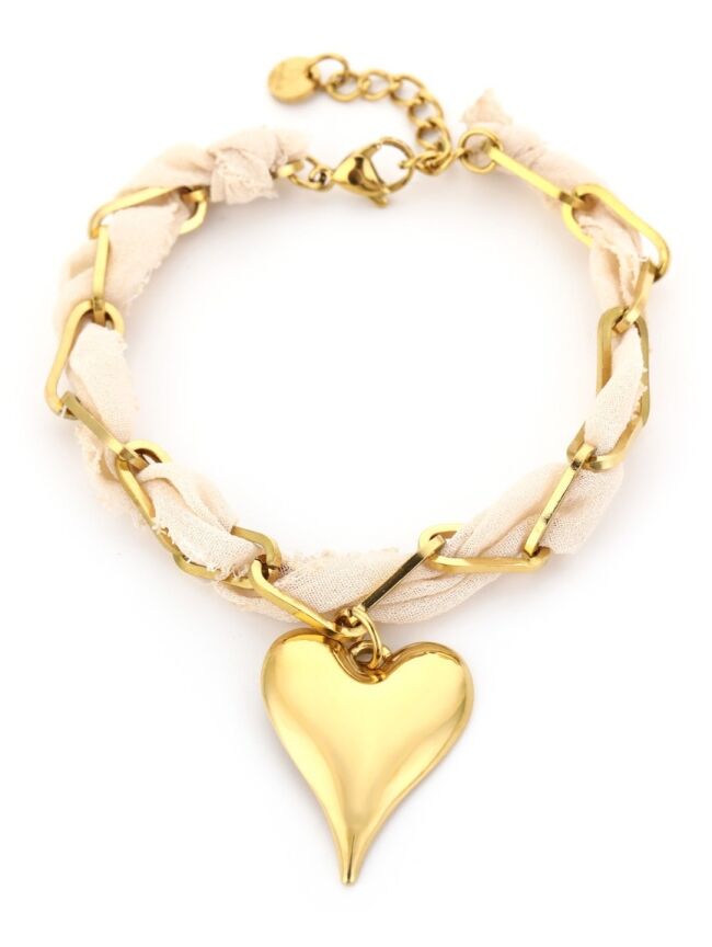 Voeg een eyecatcher toe aan je outfit! Deze toffe armband is de perfecte toevoeging aan je armbanden collectie. De armband is gevlochten en heeft een hart bedel. Combineer het met je favoriete sieraden en accessoires. Let's shop!