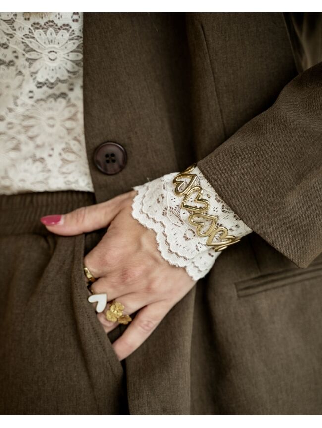 Dit leuke design met hartjes maakt hem perfect om solo te dragen, maar ook ideaal om te combineren met andere armbanden voor een trendy, gelaagde look. Een sieraad dat moeiteloos past bij elke outfit en gelegenheid.