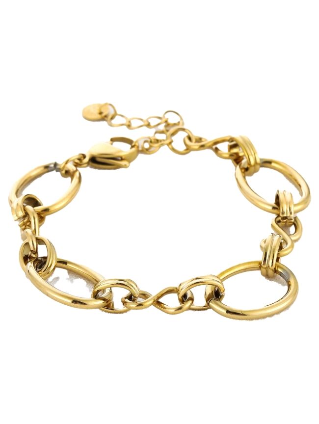 Deze prachtige goudkleurige schakelarmband is een echte eyecatcher en geeft elke outfit direct een luxe uitstraling. Het stoere maar elegante design met grote ronde schakels zorgt voor een trendy look die perfect past bij zowel casual als chique gelegenheden.
