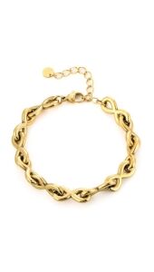 Laat je stijl spreken met deze statement armband geïnspireerd op het infinity-symbool. Het tijdloze design straalt elegantie uit en is perfect om solo te dragen of te combineren met andere sieraden voor een moderne en opvallende look.