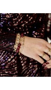 Deze elegante kralenarmband met gouden accenten geeft elke outfit een verfijnde, vrouwelijke touch. De combinatie van glanzende kralen en warme goudtinten zorgt voor een stijlvolle en tijdloze uitstraling. Comfortabel om te dragen en perfect te combineren met andere sieraden, of juist als subtiel statement op zichzelf.