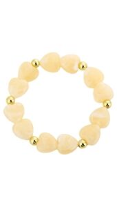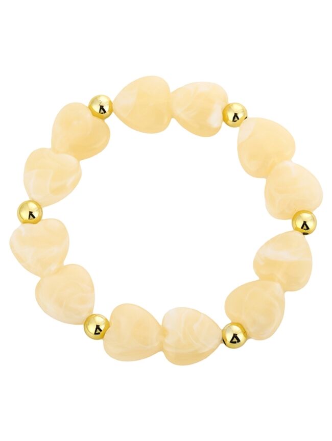 Deze stijlvolle armband met hartvormige kralen is een echte eyecatcher! De armband bestaat uit glanzende marmerlook hartjes in een warme licht gele tint, gecombineerd met subtiele goudkleurige details voor een chique finishing touch.