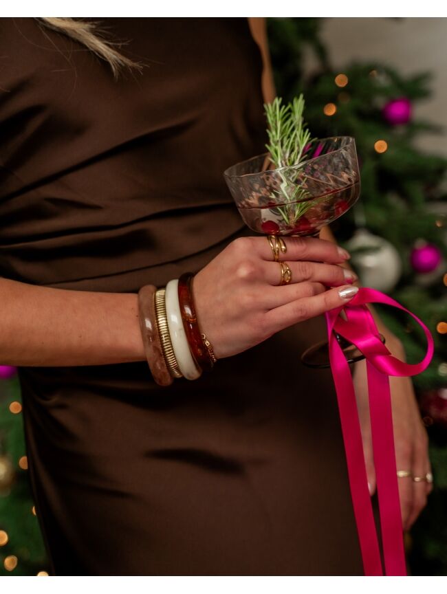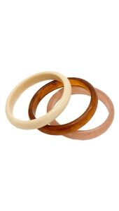 De Resin Bangle Set Bruin/Beige bestaat uit drie stijlvolle armbanden in warme, natuurlijke tinten. Handgemaakt van hoogwaardig hars en licht van gewicht, waardoor ze comfortabel dragen. De mix van bruin- en beigekleuren geeft een chique, moderne uitstraling die moeiteloos combineert met elke outfit. Draag de set samen voor een speels statement of afzonderlijk voor een subtiele, elegante look.