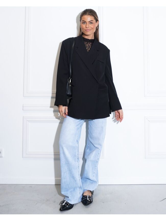 Your new favorite... Oversized blazer Mina heeft de perfecte fit, sluit met een normale en een drukknoop en heeft leuke paspelzakjes. De blazer heeft aan de zijkanten twee splitten voor een speels effect. Combineer met een kanten top of wit t-shirt als extra laagje! Your new favorite...